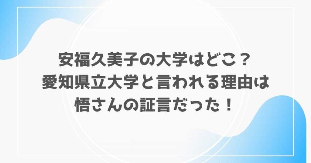 安福久美子の大学はどこ?愛知県立大学と言われる理由は悟さんの証言だった!