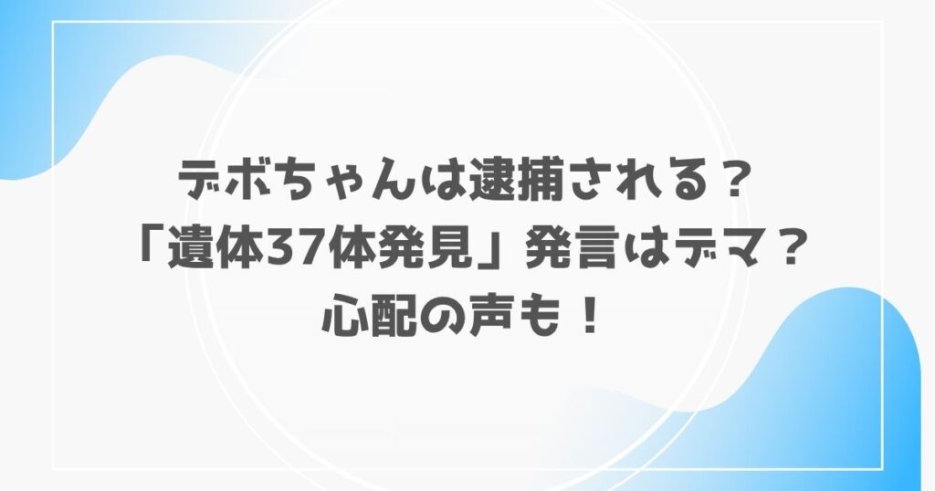 デボちゃんは逮捕される?「遺体37体発見」発言はデマ?心配の声も!