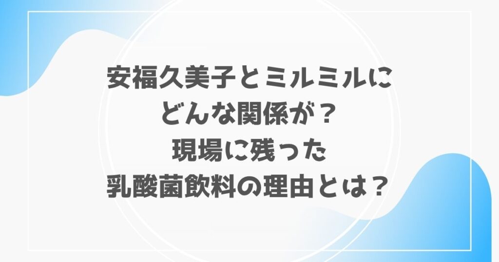 安福久美子とミルミルにどんな関係が?現場に残った乳酸菌飲料の理由とは?