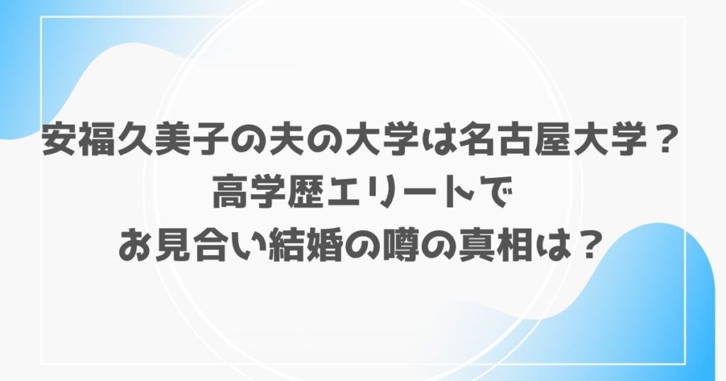 安福久美子の夫の大学は名古屋大学?高学歴エリートでお見合い結婚の噂の真相は?
