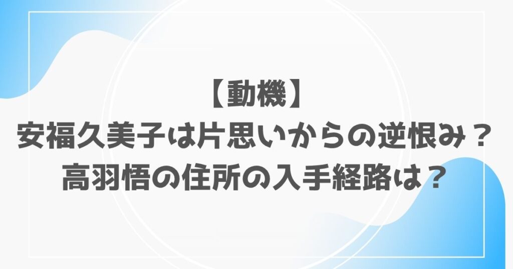 【動機】安福久美子は片思いからの逆恨み?高羽悟の住所の入手経路は?