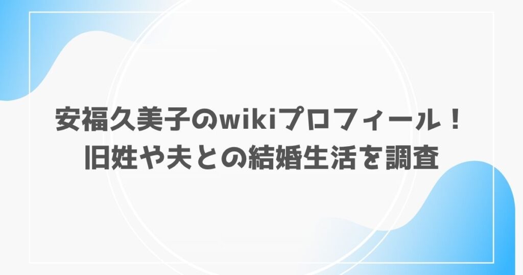 安福久美子のwikiプロフィール!旧姓や夫との結婚生活を調査