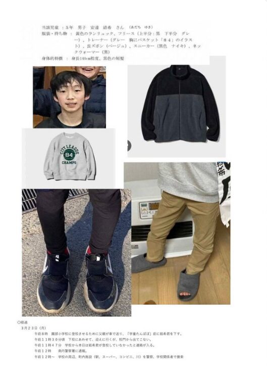 2026年3月23日、京都府南丹市で小学5年生の安達結希(あだち ゆき)さんが行方不明になりました。